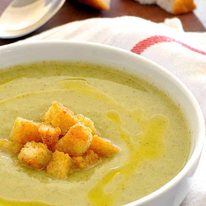 Surprise yourself with how creamy a creamy broccoli soup can be (made without cream!). Super healthy with only 165 calories per serving, this makes a wonderful light meal or lunch that takes only 15 minutes to make. Croutons are not optional!