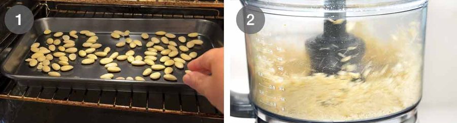 - Roasting (optional, Note 1) – Roast the almonds for 7 minutes on a small tray, shaking once halfway. Cool almonds on the tray.