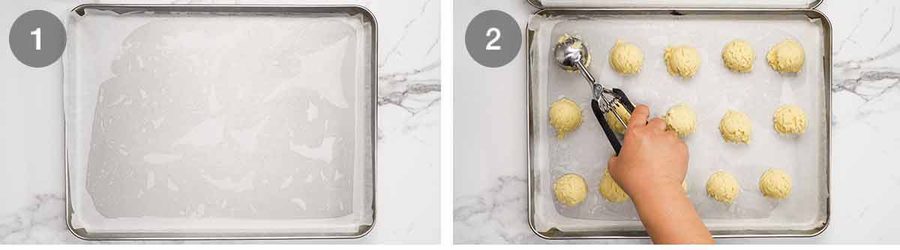 - Preheat the oven to 180°C/350°F (160°C fan-forced). Lightly grease (or spray with oil) 2 large trays and line with baking paper (parchment paper).