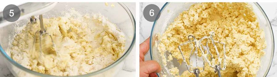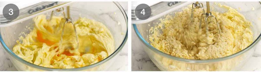 Egg and vanilla – Then beat the egg and vanilla into the butter mixture. It might look a little curdled but don’t worry, it will come together once we add the flour.