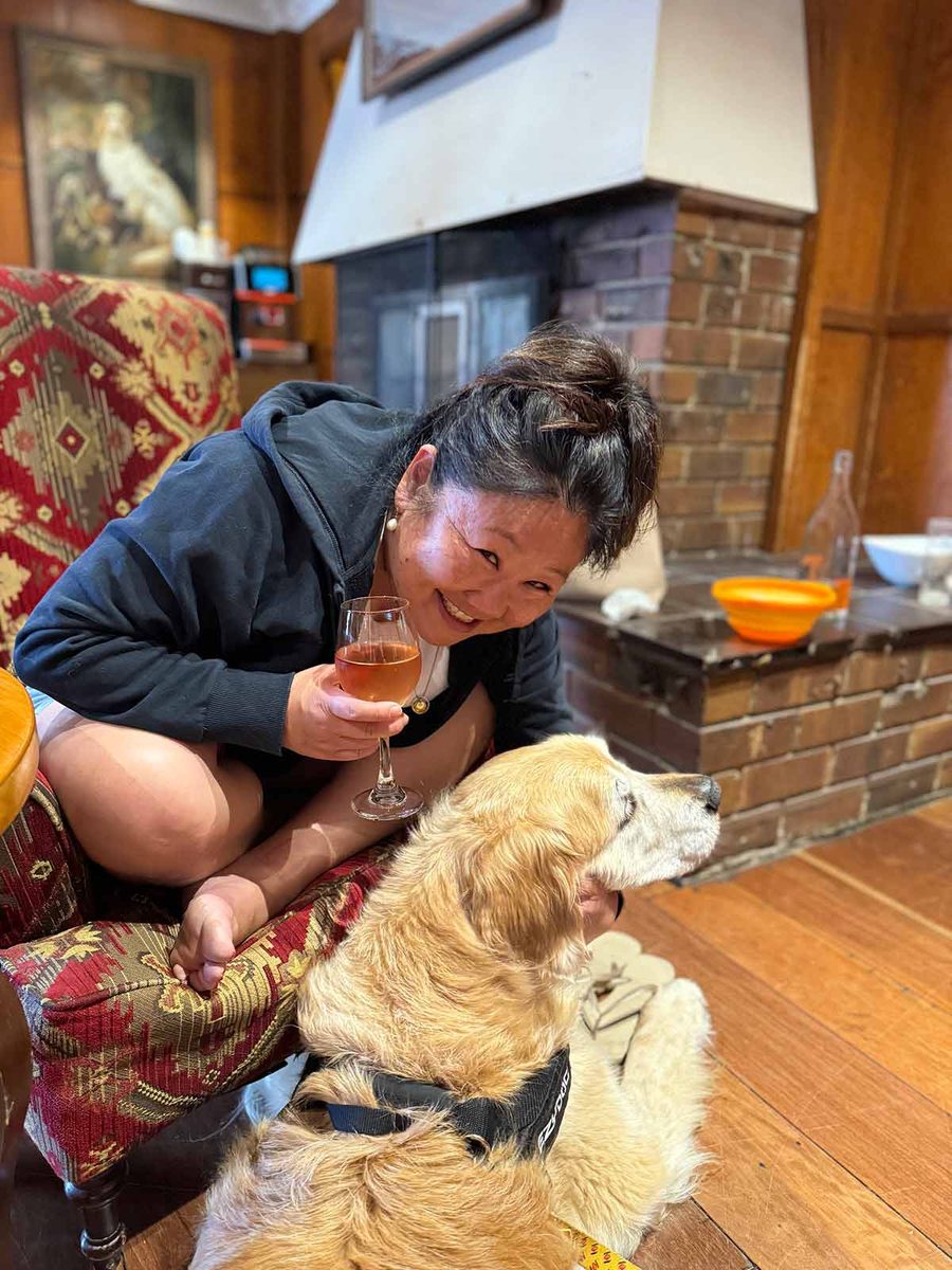 Dozer, a glass of wine and you! Who needs more on a Saturday morning! Hope you have a happy and successful time in Canberra with a few fab meals included!