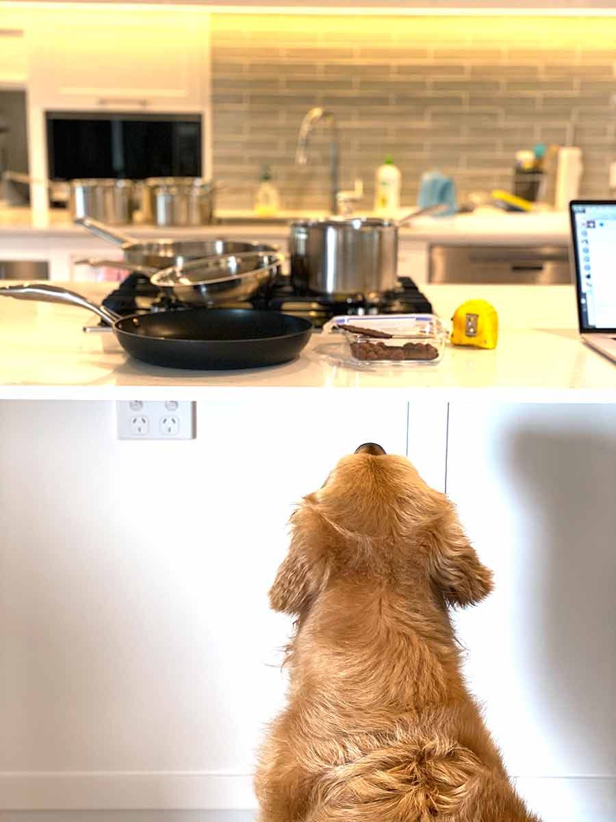 When I pulled out all my pots and pans to measure, really, the only thing Dozer cared about was the container I sacrificed to store his treats…