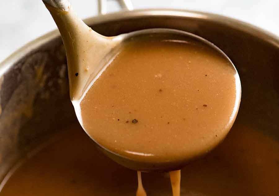 You often see this silver Scanpan in my videos which I use specifically so you can see the colour of sauces in recipes (which you can’t see in black non-stick fry pans). This is what it looks like (Chicken with Creamy Mushroom Sauce):