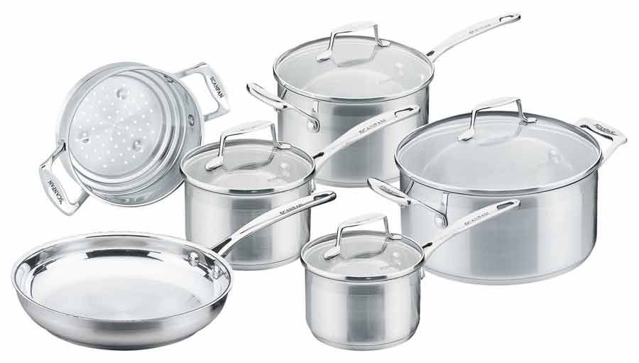 I also have stainless steel Scanpan saucepans and pots. As with the skillets, they are heavier duty than flimsy, cheap ones so heat retention and distribution is better. They are so good you can even make stews in them, which I did for many years before I got a Dutch Oven (which gives you better results, but until I knew otherwise, I was happy with my Scanpan stews!).