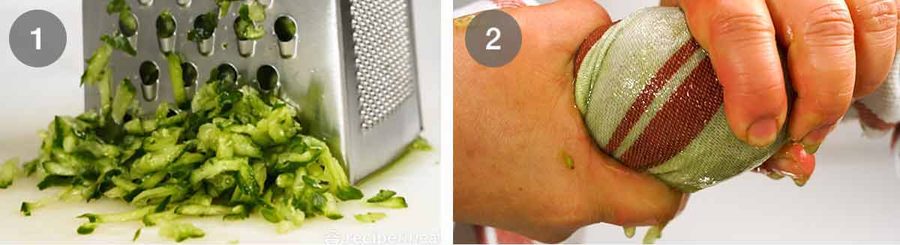 - 2 cucumbers , grated using a box grater, excess water squeezed out very well (3/4 cup once squeezed)